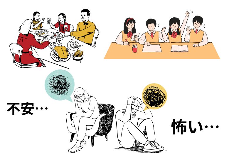 - 人前で過度な不安を感じ、日常生活に支障が出る状態