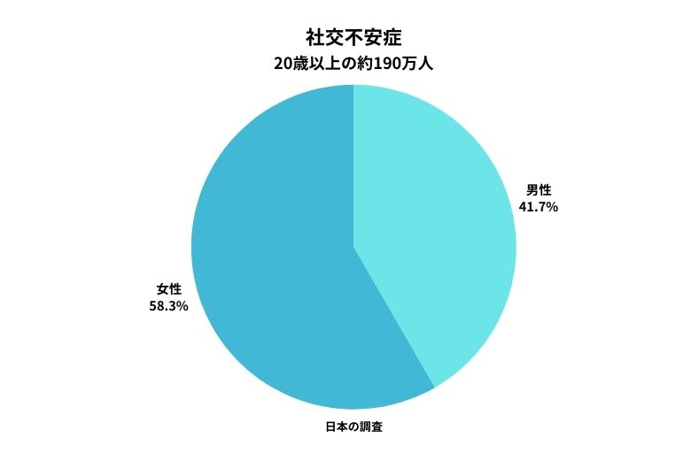 日本の調査によると、20歳以上の約190万人が社交不安症を経験しているとされ、