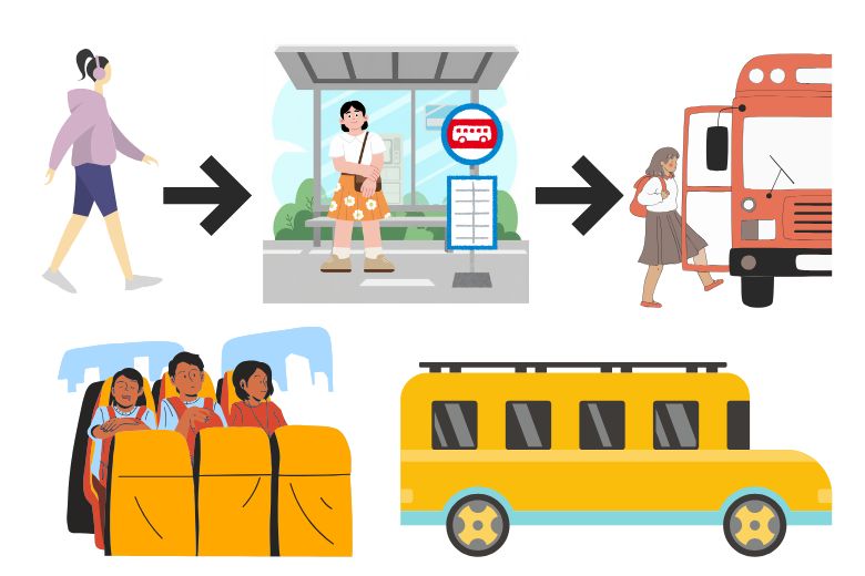「バス停に行く → 少し滞在する → バスに乗る」
