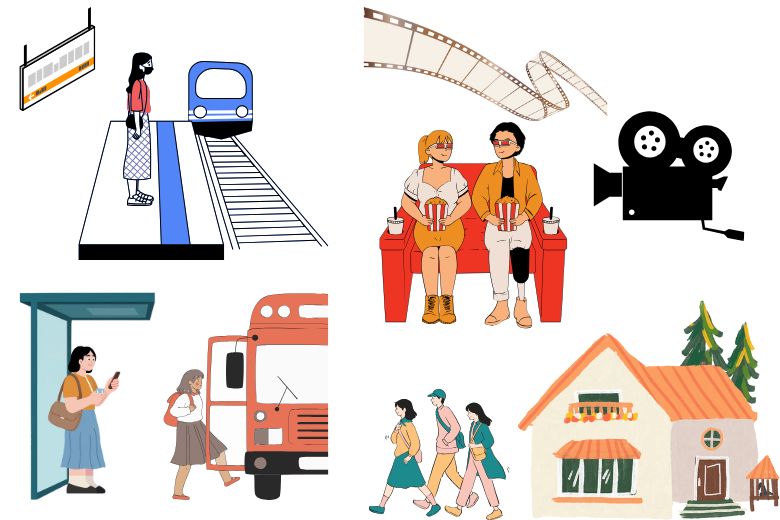 - 電車やバスに乗る