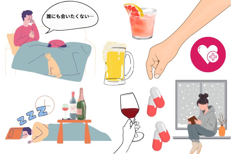 - 不安をまぎらわせるために、アルコール・薬物依存に陥りやすい