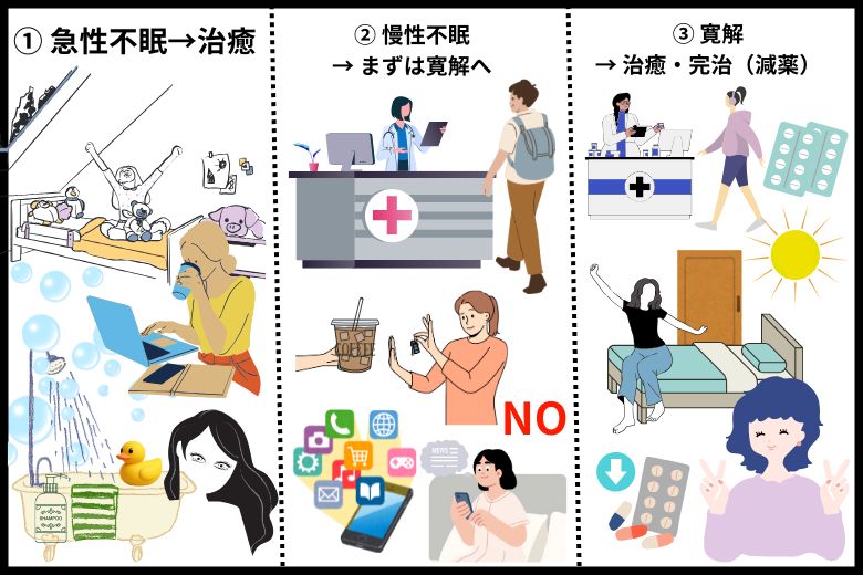 ① 急性不眠 → 治癒を目指す
