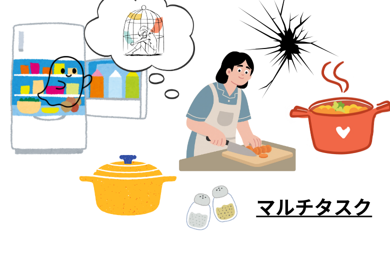 たとえば、お湯を沸かしながら野菜を切る、焼きながら味噌汁を作る、といったように、いくつもの作業を同時進行で行う「マルチタスク能力」が求められます。主婦や一人暮らしの方が2~3品の料理を作るときも、この同時進行が欠かせません。